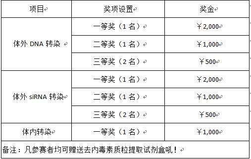參賽者條件: 凡購買Polyplus(保利嘉)公司轉染試劑的中國區客戶