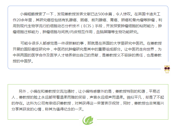 2017年3月16日,英國卡迪夫大學的華人科學家姜文國教授在倫敦白金漢宮接受了英國王儲查爾斯親王親自授予的2017年度“大英勛章”,表彰其在“國際癌癥研究方面的突出貢獻”, 成為首位獲得這一榮譽勛章的原籍為中國大陸的科學家。