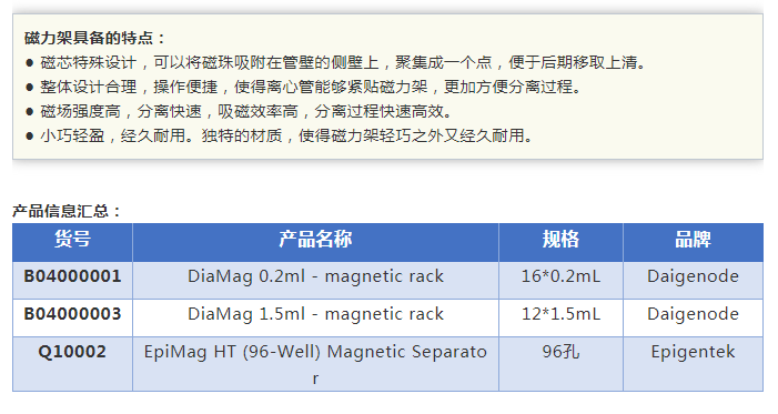 在分子實驗過程中,磁珠法核酸純化、磁珠法免疫沉淀實驗如:IP,Co-IP,ChIP等,都需要一個高效金屬磁力架,它不僅可以實現核酸和蛋白質的高效磁珠分離,還可以簡化實驗操作提高實驗效率。隨著磁珠在核酸或蛋白分離方面的應用普及,磁力架成為了實驗室的必備小工具。