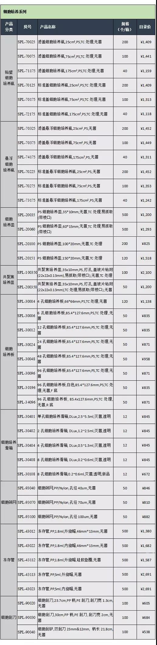 SPL 公司作為韓國生物類耗材產品第一大供應商,擁有自主研發的PLAZMA(高分子塑料表面處理技術,有利于細胞附著),還有多種培養、儲存類耗材,并于2003年獲得ISO9001認證。其產品也獲得全球34個國家的認可。