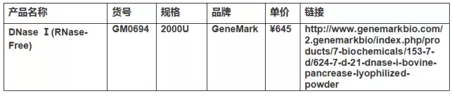 DNaseⅠ應用于1)制備不含DNA的RNA樣品;2)去除基因組DNA等污染;3)體外RNA轉錄后去除DNA模板;4)足跡法分析DNA-蛋白質相互作用;5)與DNA PolymeraseⅠ一起用于切口平移;6)產生DNA隨機片段文庫等