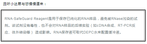 RNA-SafeGuard Reagent可用于溶解及保存RNA樣品、配置RNase-free緩沖液,使用方法簡單又方便!