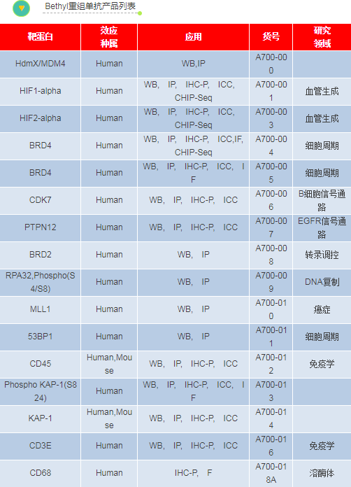 Bethyl特色重組單抗產(chǎn)品數(shù)據(jù)展示