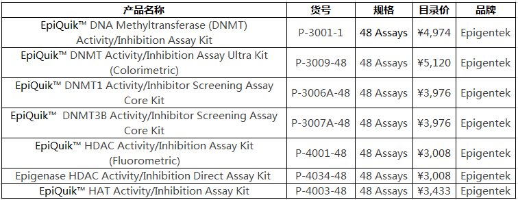 Epigentek還為您提供表觀遺傳相關的DNMT, HDAC和HAT核提取物檢測試劑盒。