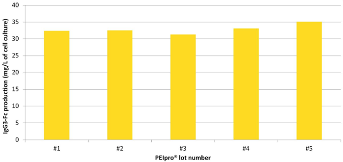 圖5.使用不同批次PEIpro?生產蛋白的得率具有極佳的重復性
