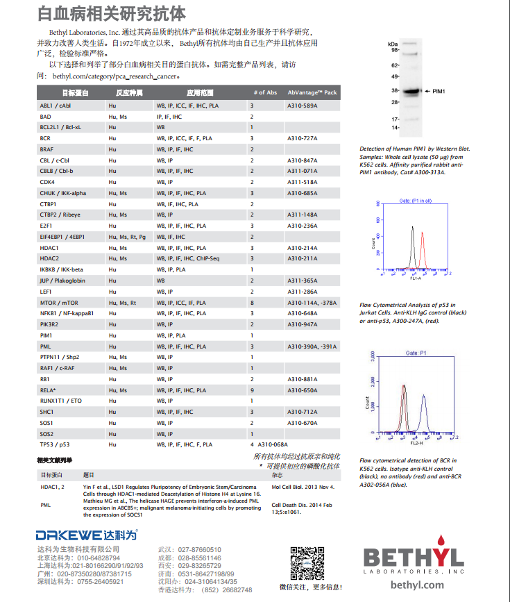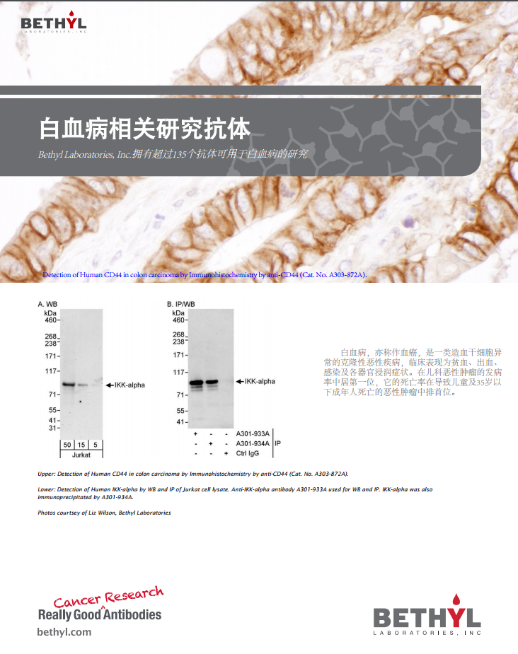 【重磅】Bethyl Laboratories擁有超過135個抗體可用于白血病的研究