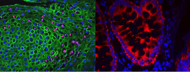 2.AMCA:常用在多標(biāo)記實(shí)驗(yàn)中,如免疫熒光、流式細(xì)胞術(shù)。其缺點(diǎn)是,淬滅快,且由于肉眼不能很好的檢測其所激發(fā)的藍(lán)色熒光,因而AMCA耦聯(lián)的二抗更適用于檢測大量存在的抗原。