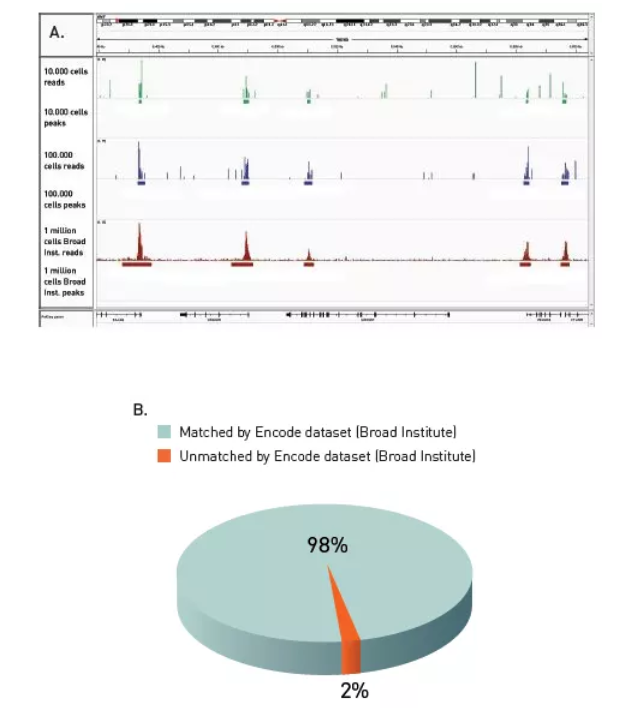 Fig.3 對ChIP-seq富集產(chǎn)物的可靠檢測,并與ChIP-seq參考數(shù)據(jù)完美匹配。